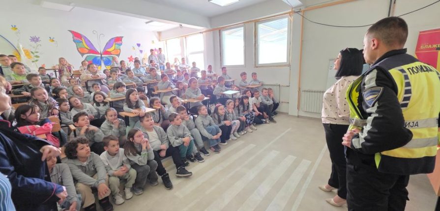 Преку интересна презентација учениците научија како правилно и безбедно да се однесуваат како пешаци и учесници во сообраќајот.